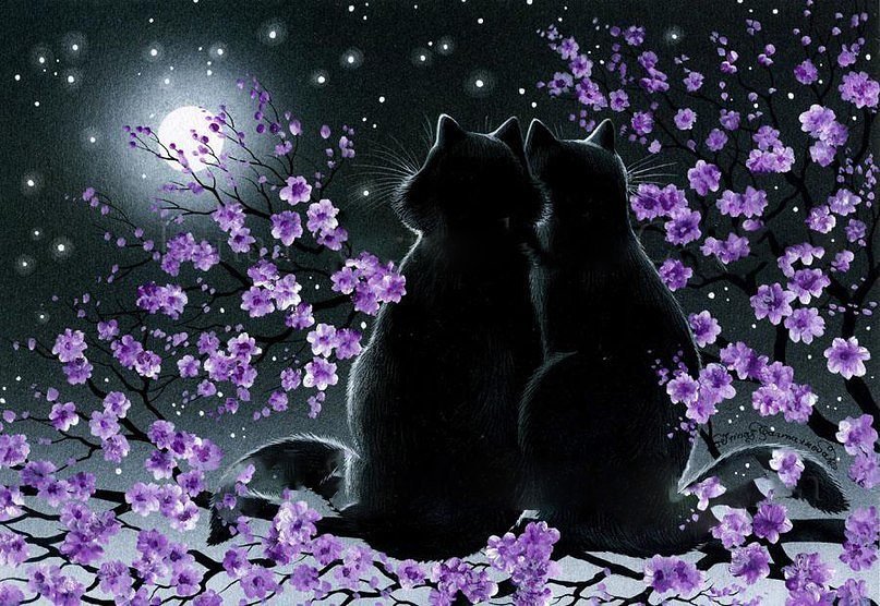 Теги: луна, домашние животные, кошки, на черном, кот.
