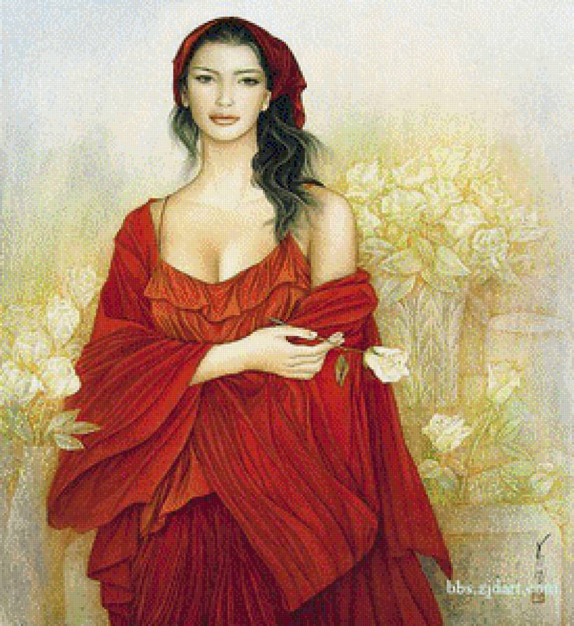 Комментарии к схеме вышивки «mujer con pañoleta roja» (№822596)