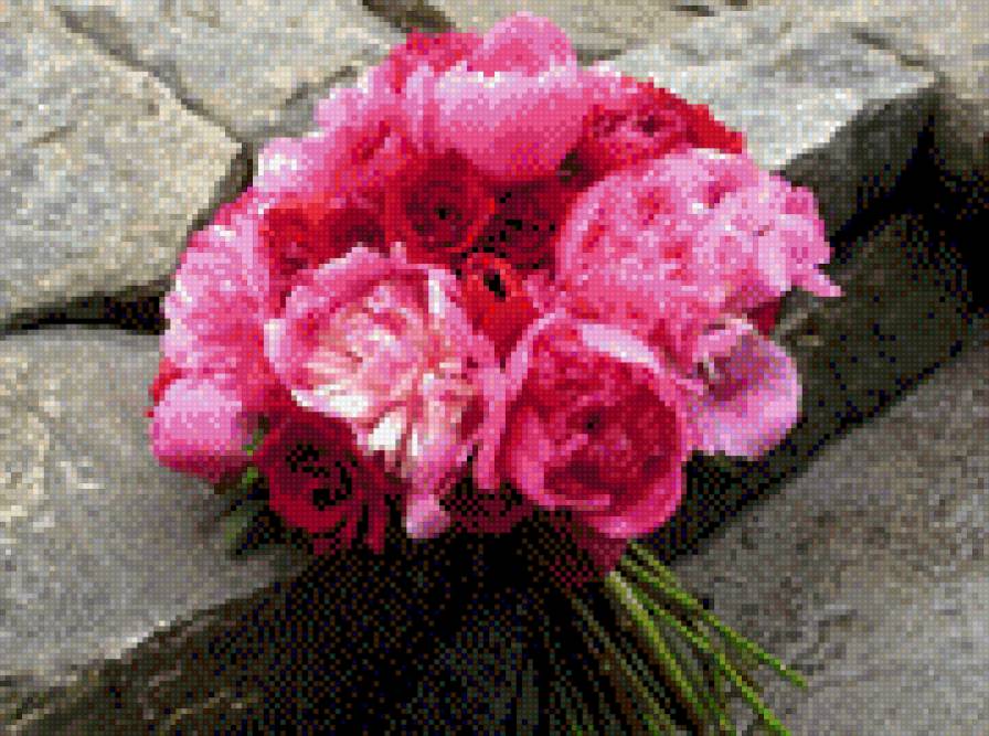 Схема вышивки «пионы на камнях» (№835885)