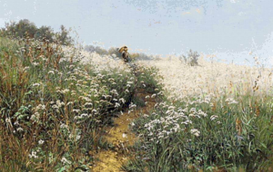 Схема вышивки «Женщина под зонтом на цветущем лугу (худ. И.Шишкин)» (№836680)