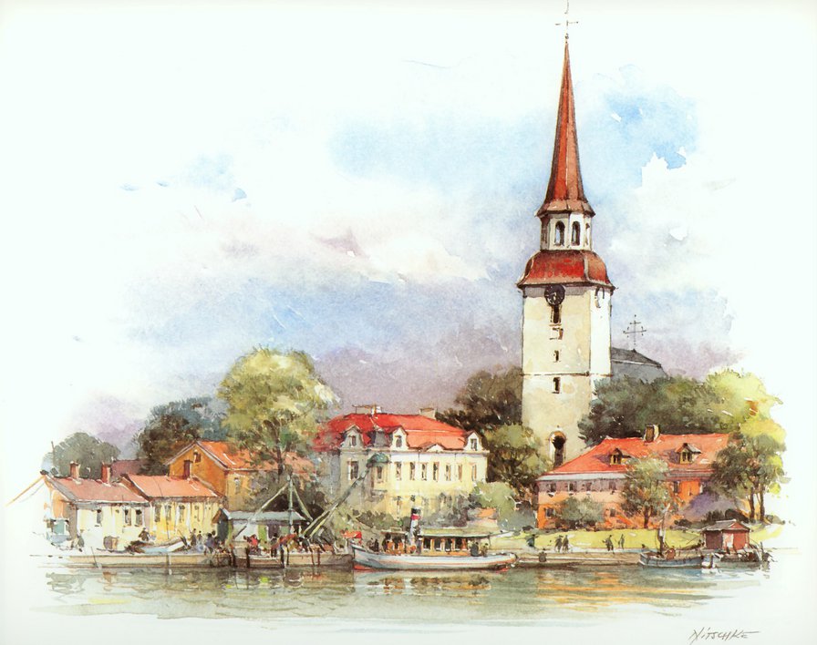 Теги: лето, река, живопись, природа, пейзаж, мост.