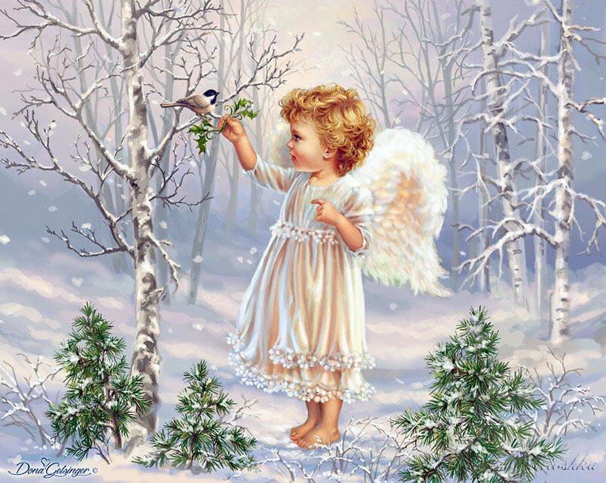 Схема вышивки «ангелочек с птичкой» (№848554)