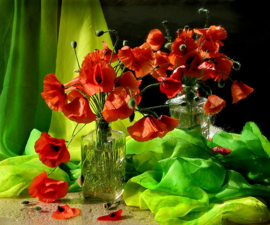 Схемы вышивки, похожие на «маки на фоне зеленой ткани» (№857260) по сюжету