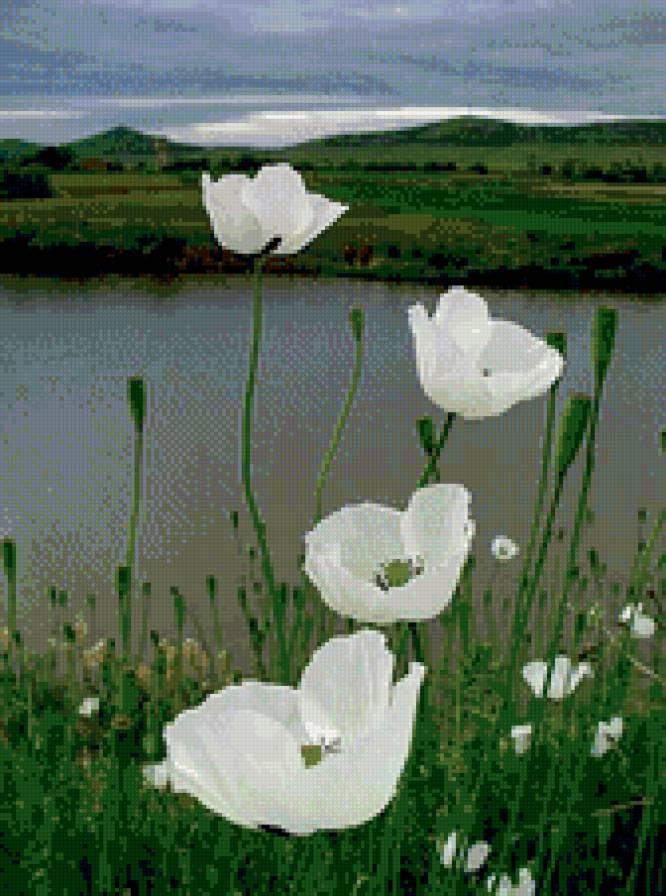 Схема вышивки «Белые маки в сумерках» (№857268)