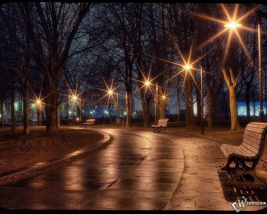 Теги: пейзаж, скамейка, осень, аллея, парк, фонари.