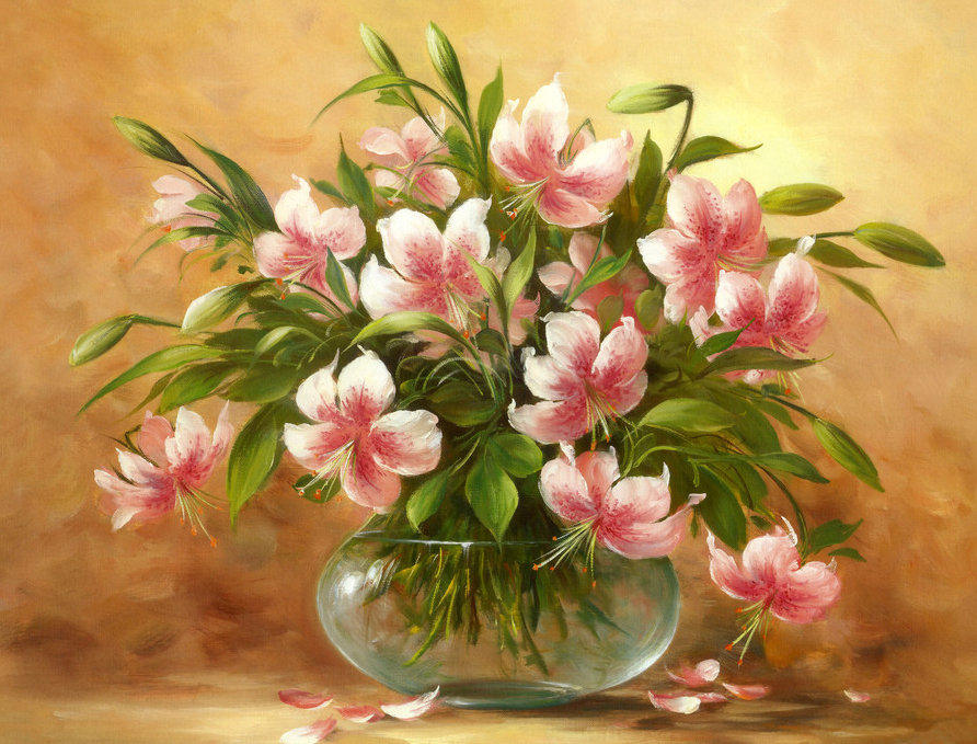 Схемы вышивки, похожие на «букет лилий в стеклянной вазе» (№891408) по сюжету