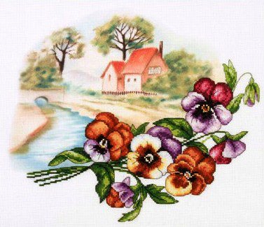 Комментарии к схеме вышивки «пейзаж с анютками» (№89393)