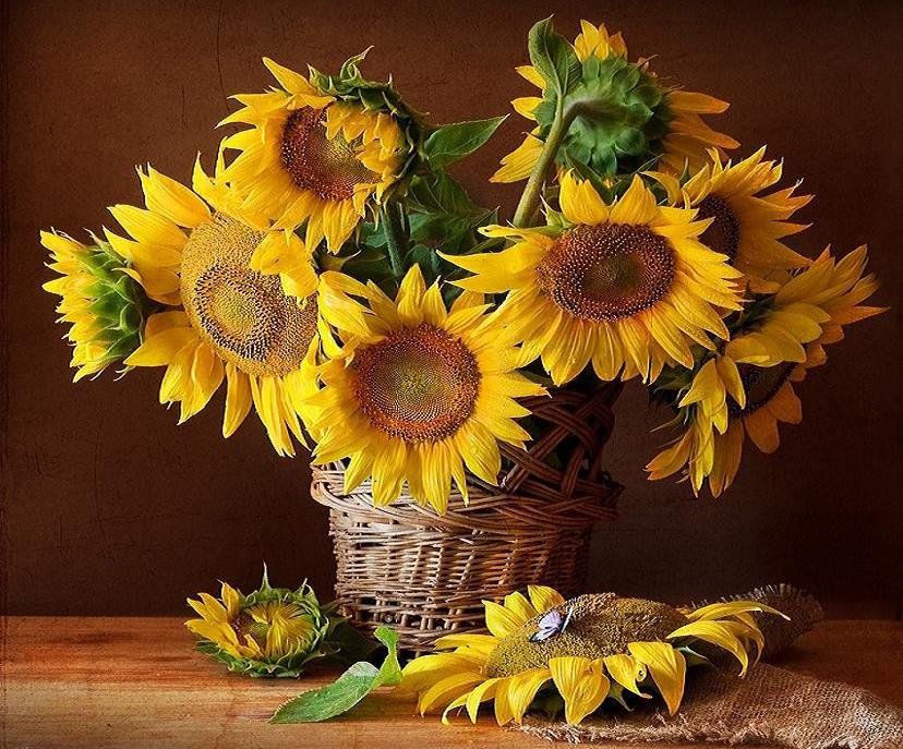Теги: живопись, картина., букет, цветы, подсолнухи.