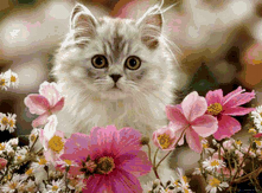 Схема вышивки «котенок в цветах» (№901332)