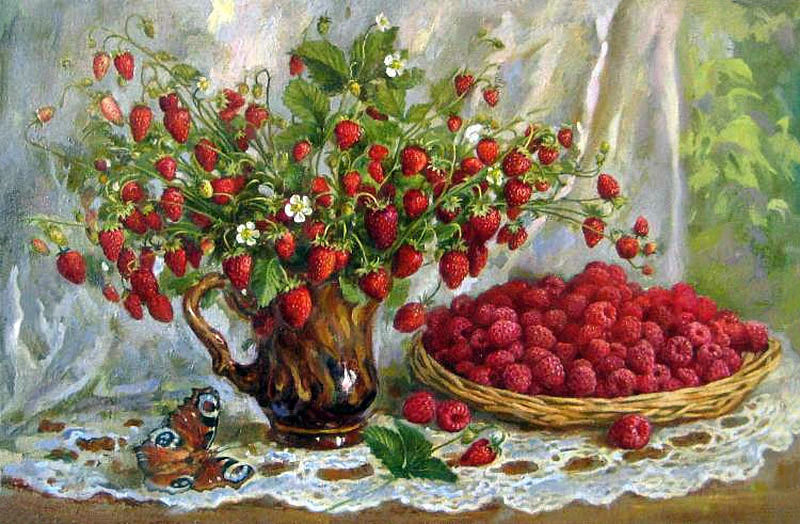 Теги: ваза, букет, цветы, бокалы, сердце, натюрморт, живопись.