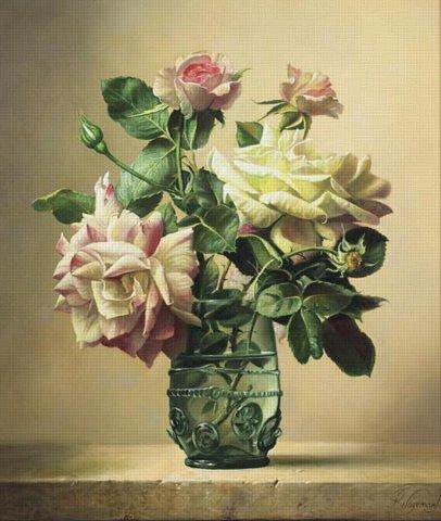 Теги: ваза, букет, натюрморт, розы, цветы, живопись.