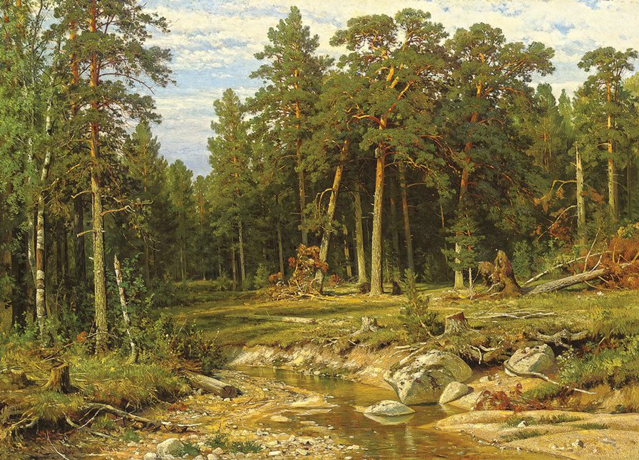 Теги: природа, сосны, живопись, река.