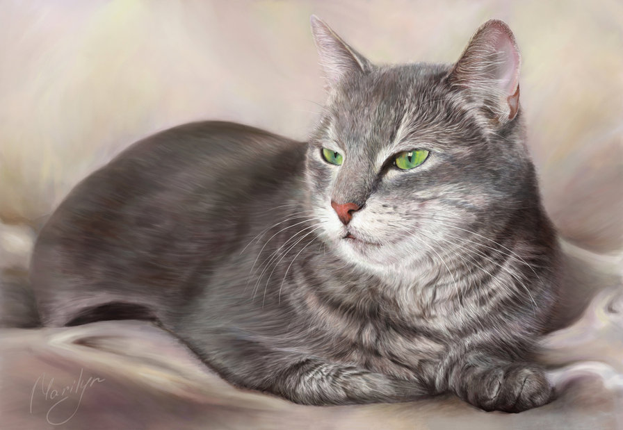 Теги: животные, цветы, природа, картина, красота, живопись, кошка.