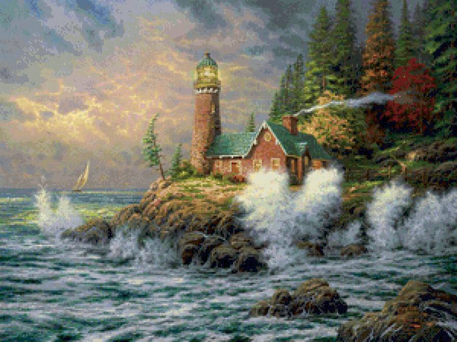 Схемы вышивки, похожие на «маяк и волны» (№906473) по сюжету