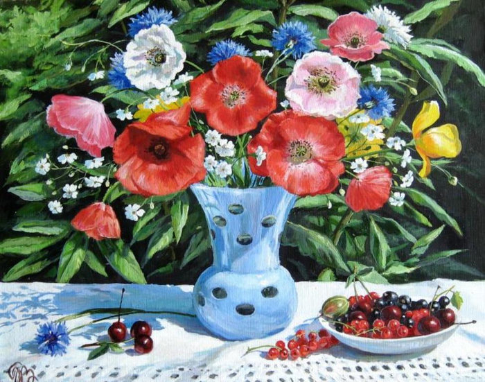 Теги: букет, колокольчики, цветы, ваза, живопись, ромашки, маки.