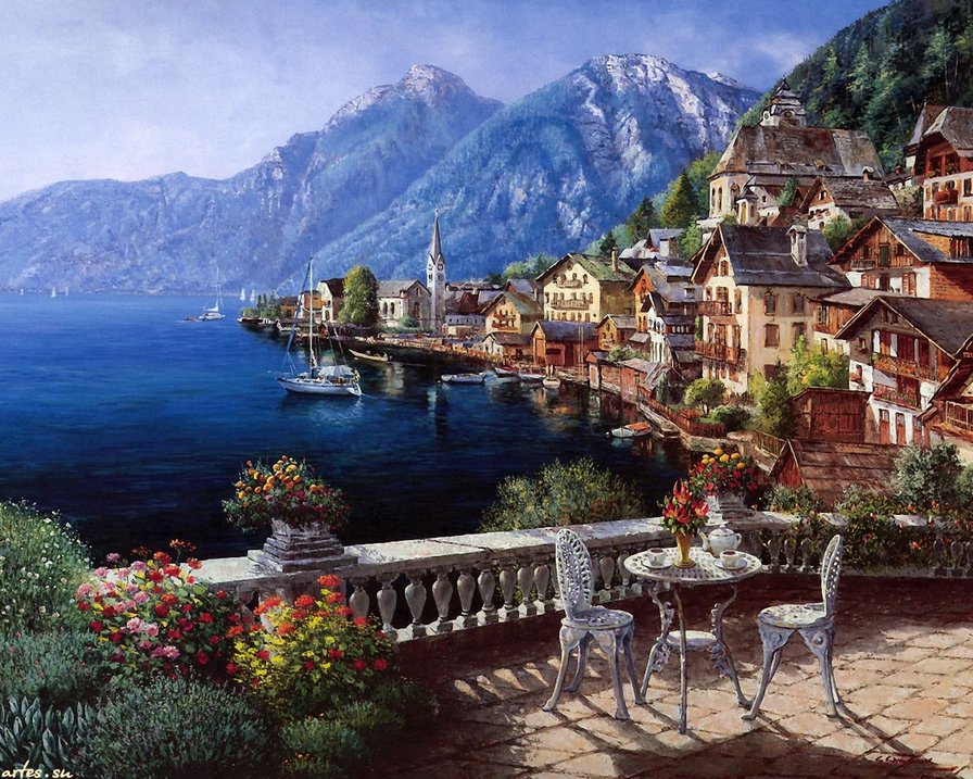Схемы вышивки, похожие на «терраса с видом на море» (№910967) по сюжету