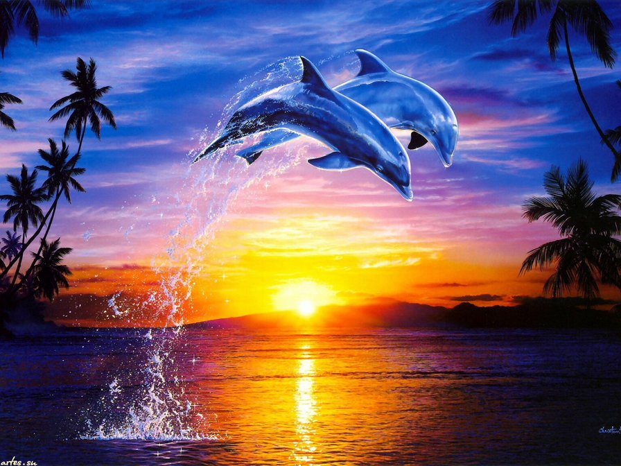 Схемы вышивки, похожие на «пара дельфинов на закате» (№917232) по сюжету