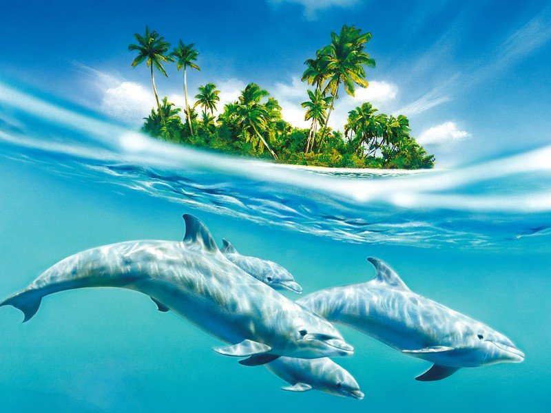 Теги: море, пейзаж, волна, дельфины, природа.