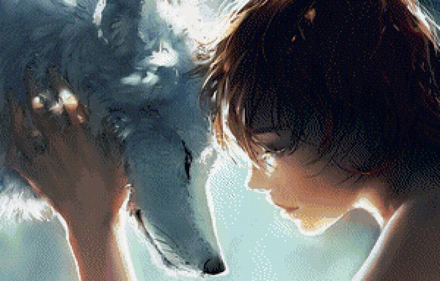 Комментарии к схеме вышивки «Девушка и волк» (№922620)