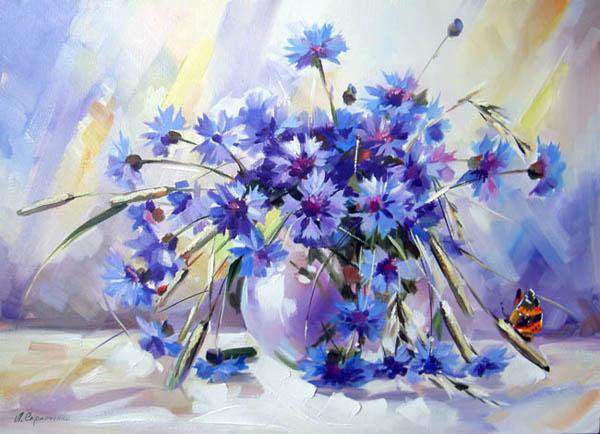 Теги: ваза, цветы, васильки, картина художника.