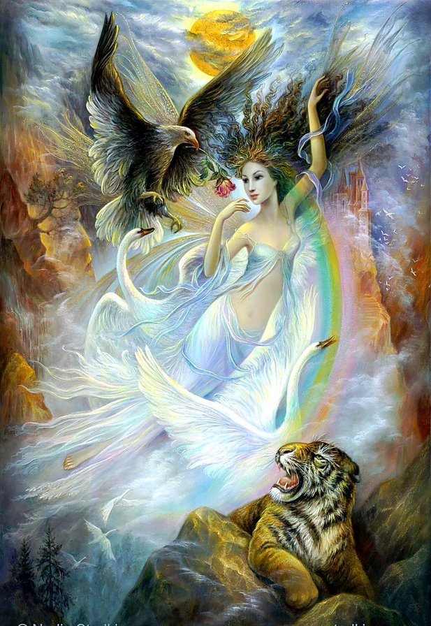Комментарии к схеме вышивки «девушка фэнтези с тигром о орлом» (№959419)