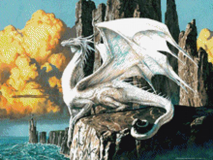 Схема вышивки «белый дракон страж» (№966520)