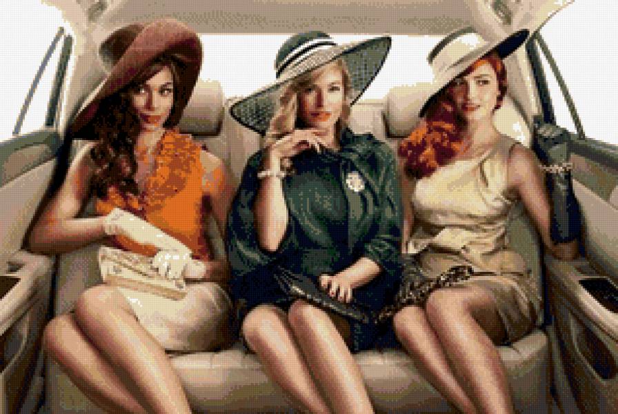Схемы вышивки, похожие на «три шикарные женщины в машине» (№967624) по сюжету