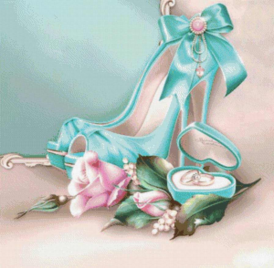 Схема вышивки «свадебная подушка с розами и туфлями» (№967855)