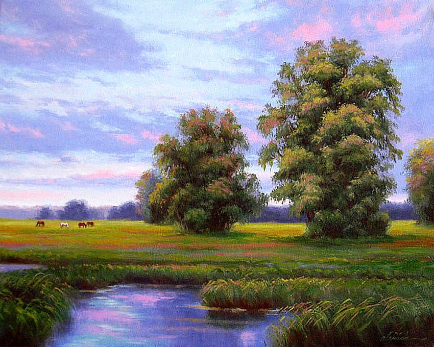 Схемы вышивки, похожие на «вечер на лугу» (№973619) по сюжету