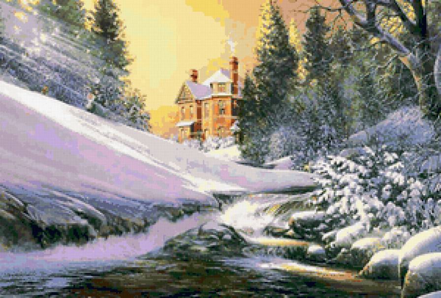 Схема вышивки «зима в деревне» зима в деревне