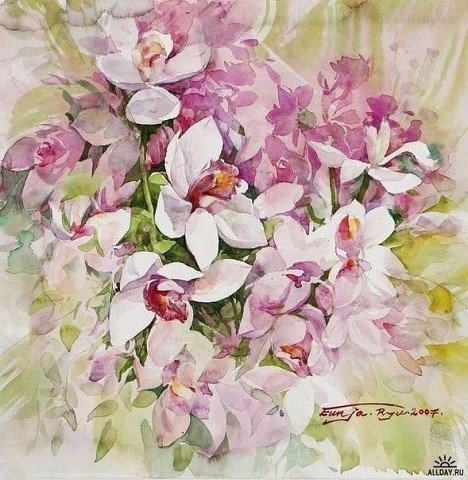 Схемы вышивки, похожие на «Нежные цветочные акварели Ryu Eunja № 9» (№981953) по сюжету