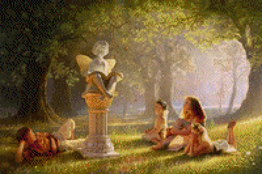 Схемы вышивки, похожие на «Детки рядом со статуей ангела» (№983615) по сюжету
