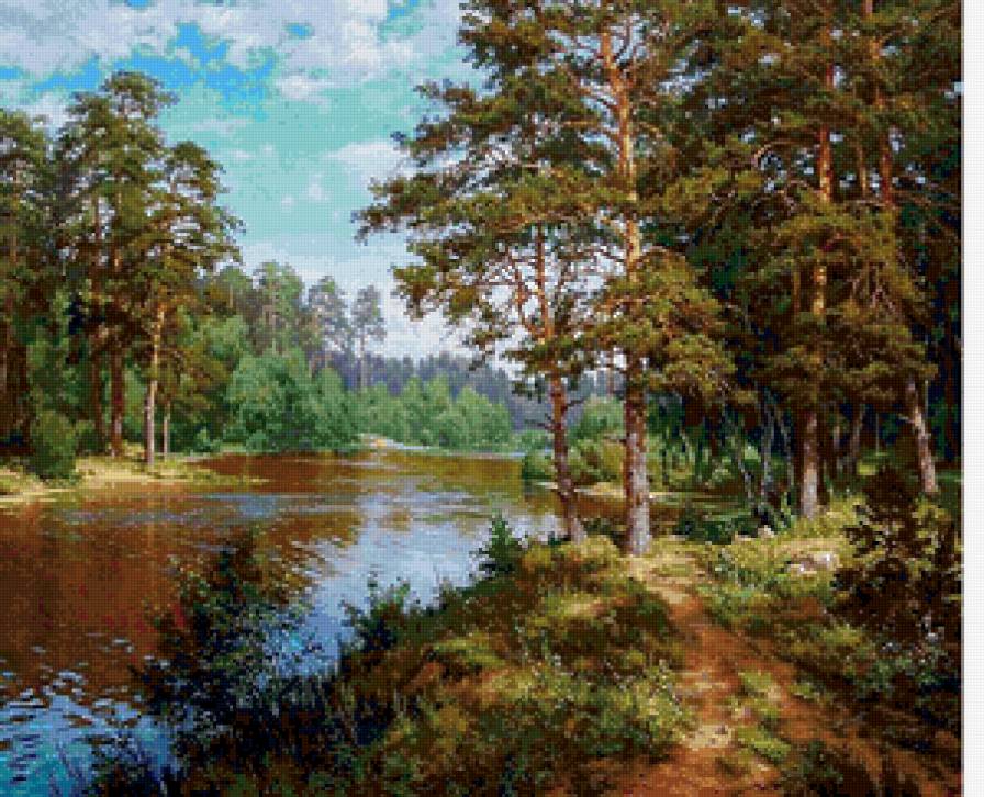 Схема вышивки «Сосны на берегу реки» (№986478)