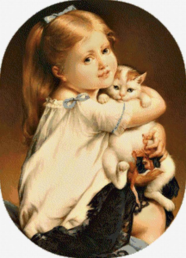 Схема вышивки «Серия "Картины" Девочка с котенком"» (№993840)