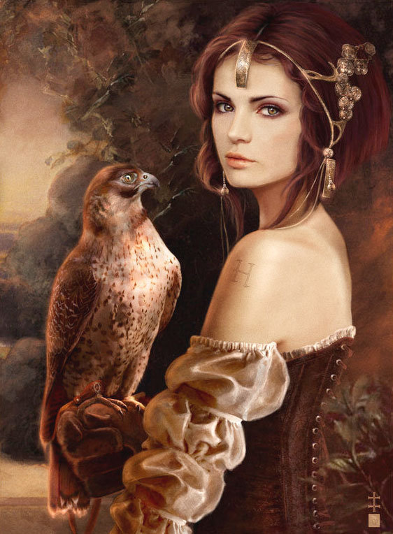 Схема вышивки «Девушка и сокол» (№993869)