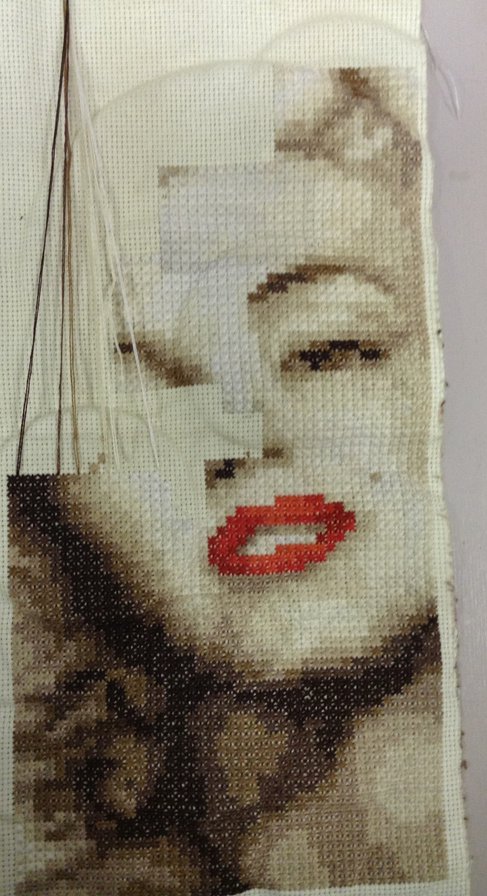 Этап процесса вышивки «ММ»