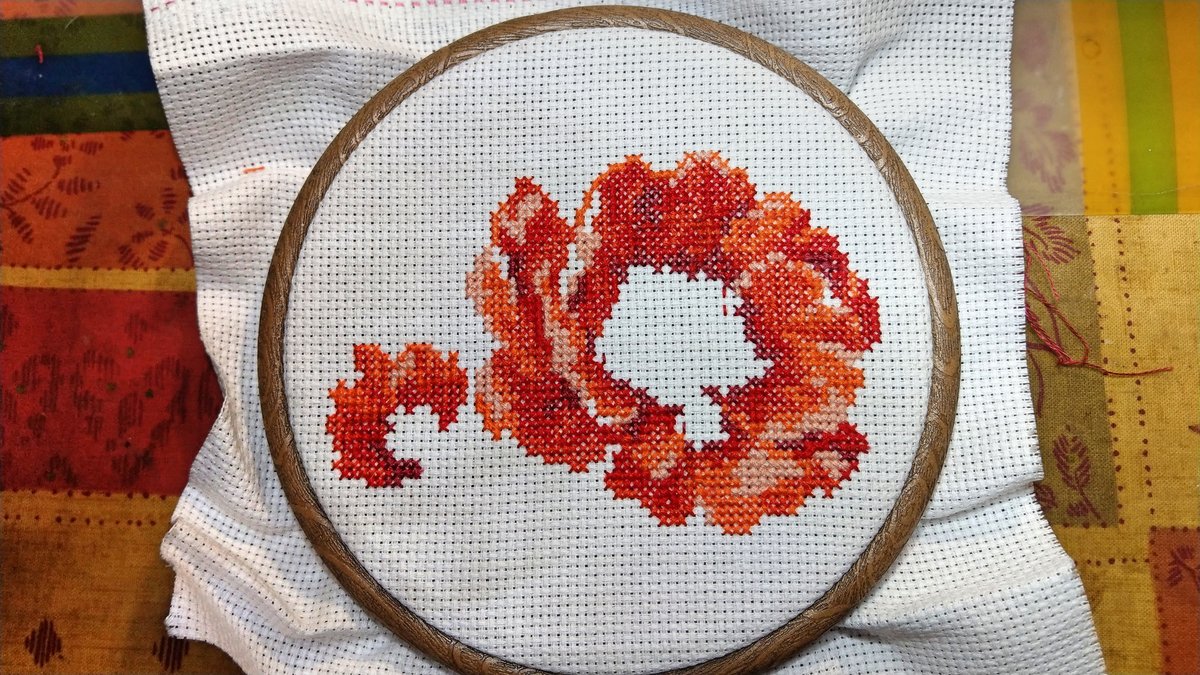 Этап процесса вышивки «Мак»