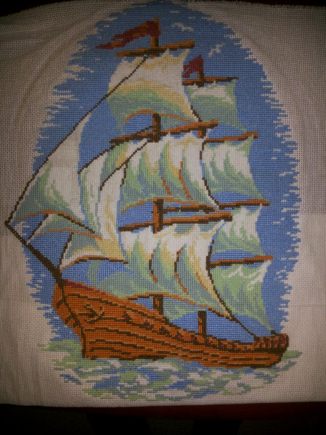Собственно на этом этапе вышивка кораблика завершена