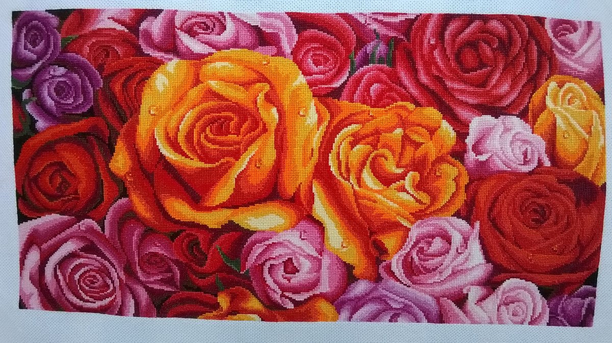 Этап процесса вышивки «Цветные розы»