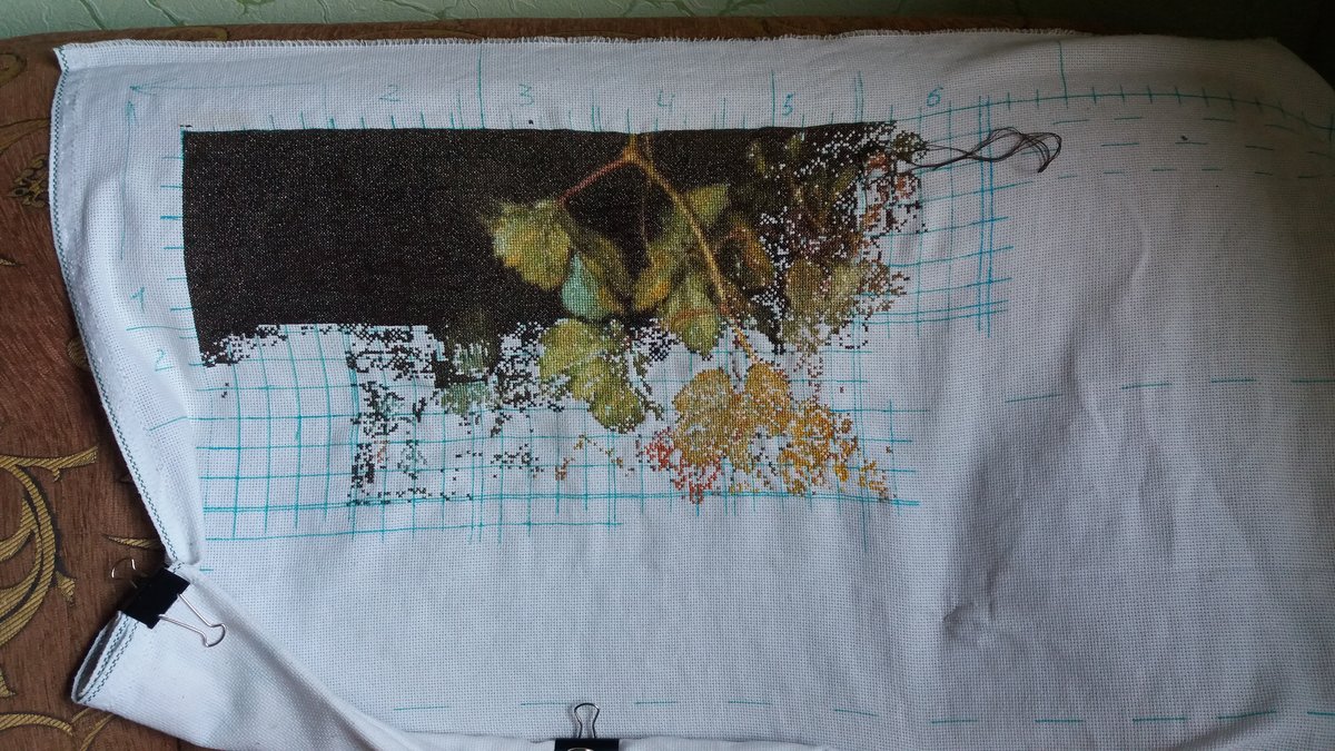 полностью вышит 4 лист - 67*183 крестика,если учесть вышитое снизу и справа, то 5% уже есть,бленды бленды бленды , но зато не скучно шить.Всего в схеме 81 лист так что терпения мне.