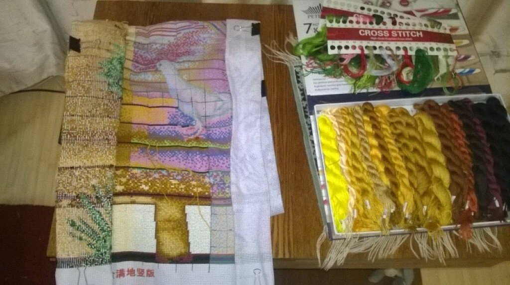 Этап процесса вышивки «Дорога в осень»