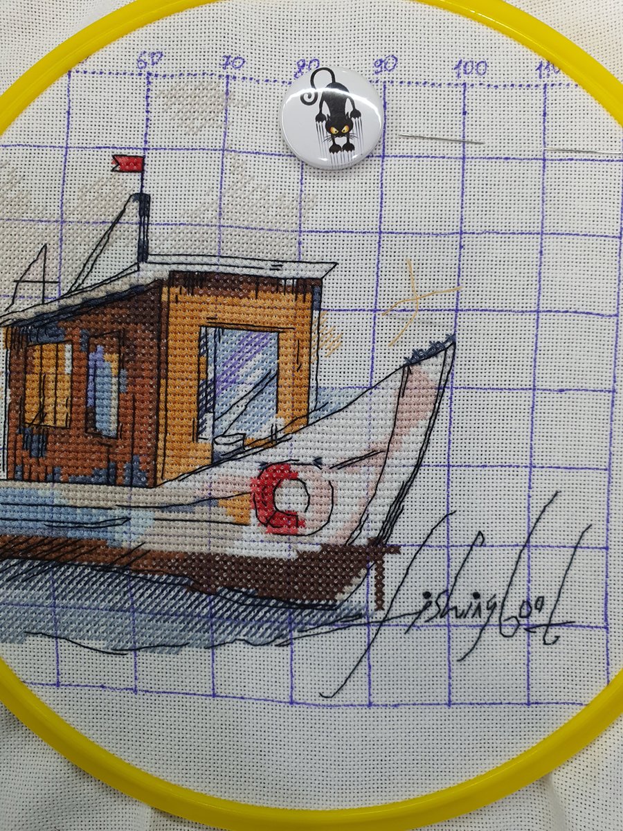 Этап процесса вышивки «Рыбацкая лодка»