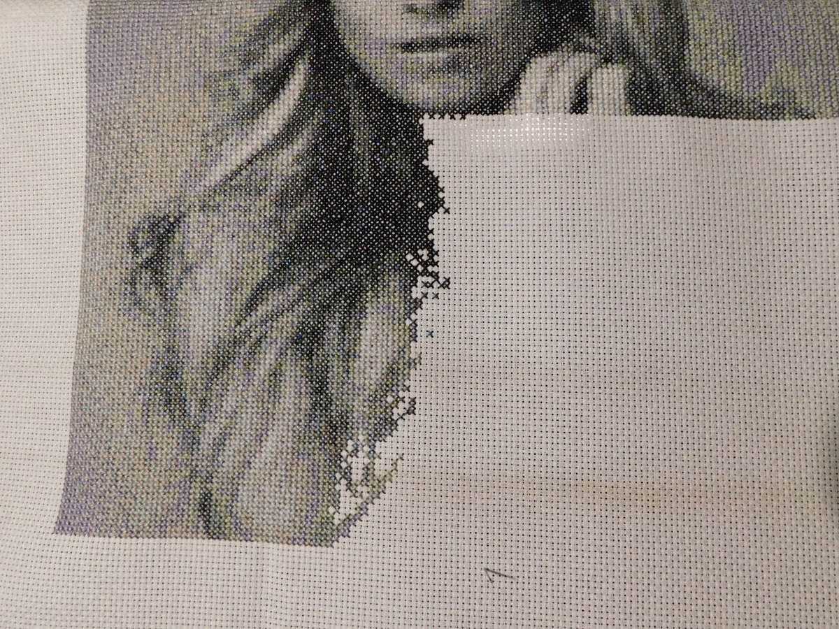 Этап процесса вышивки «Девушка с бантом»