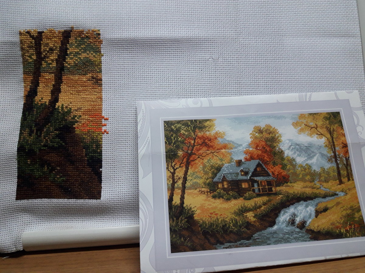 Этап процесса вышивки «"Осенний пейзаж"»