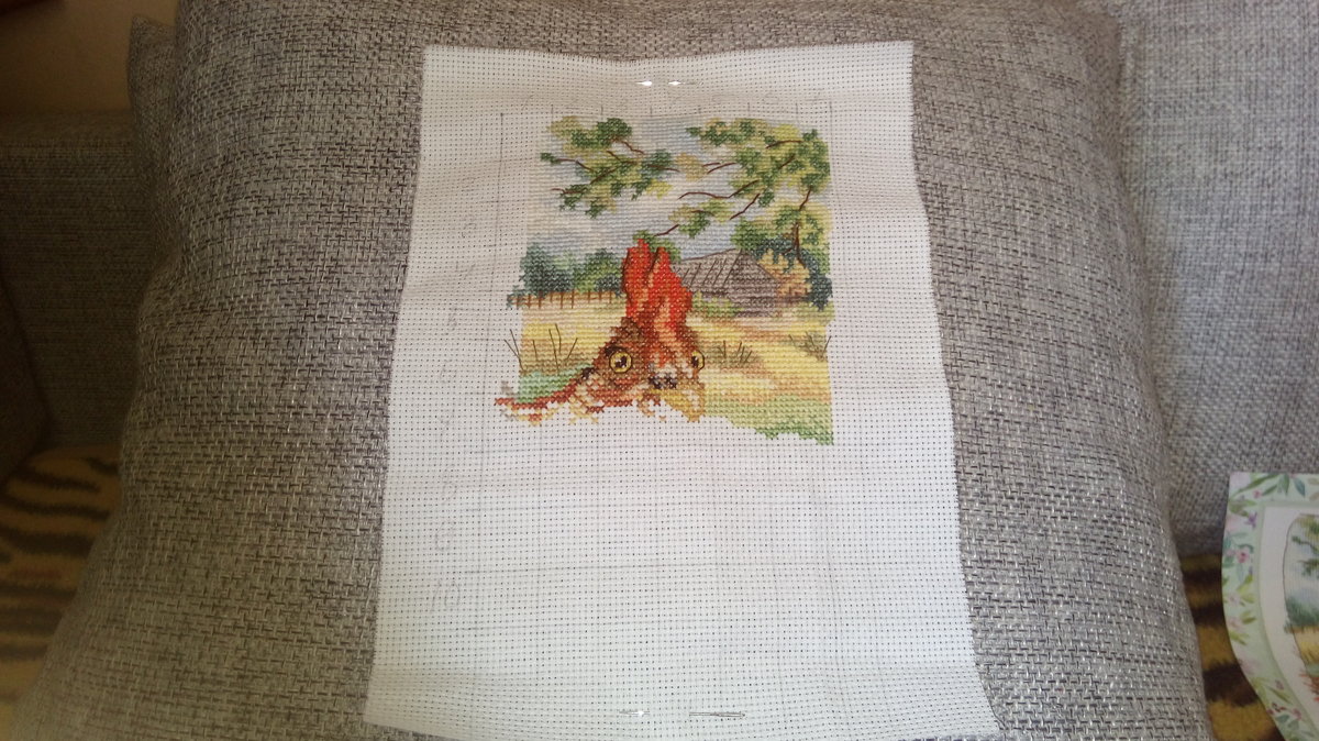 Этап процесса вышивки «Кто там?»