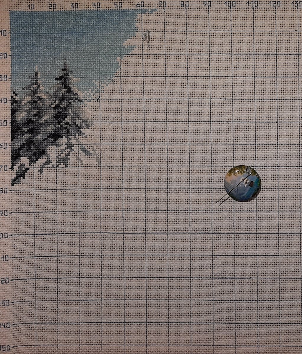 Этап процесса вышивки «Зимний день»