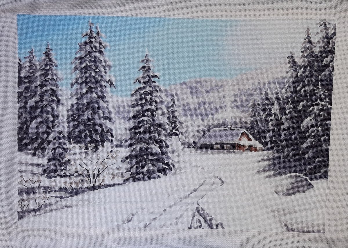 Финиш! Вышивать закончила в такой же ясный морозный день, как и тот, что на картине!