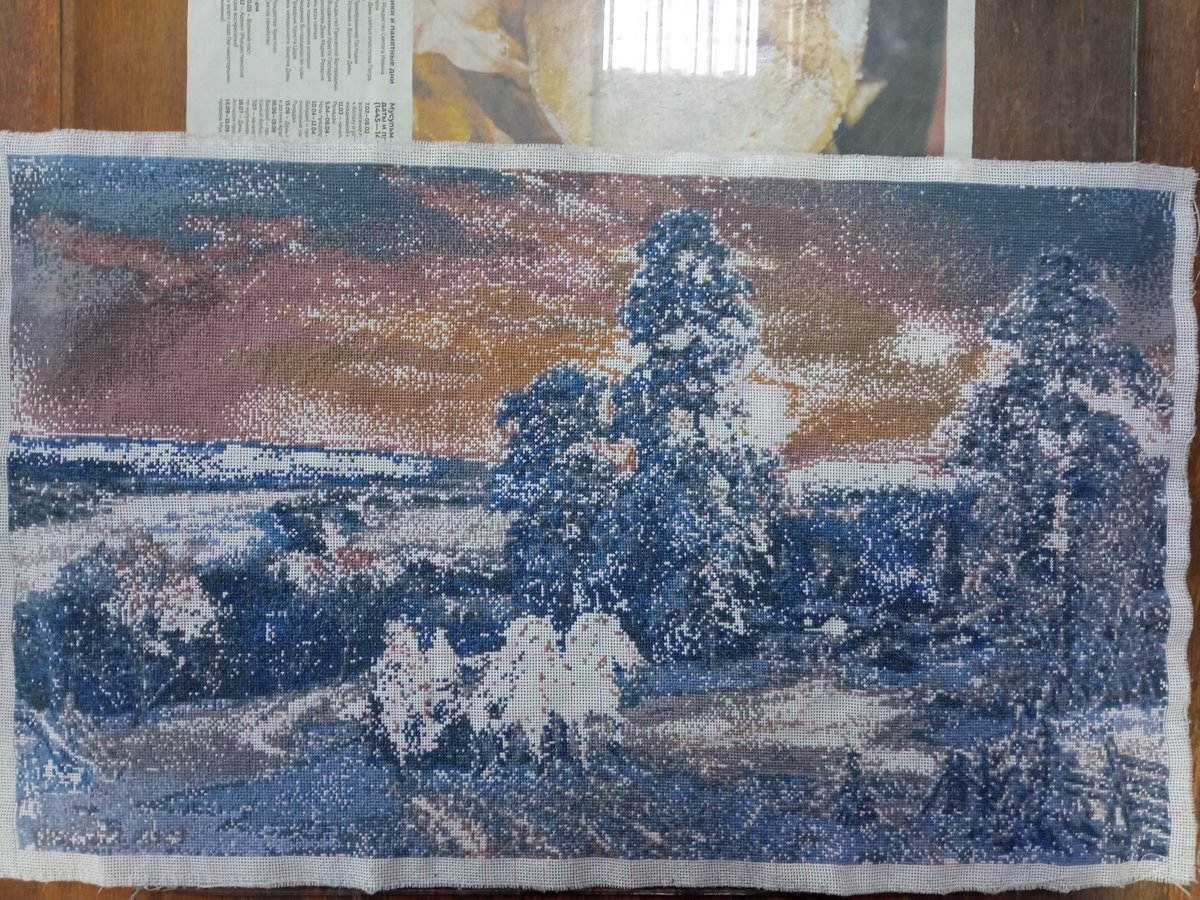 Этап процесса вышивки «Зима»