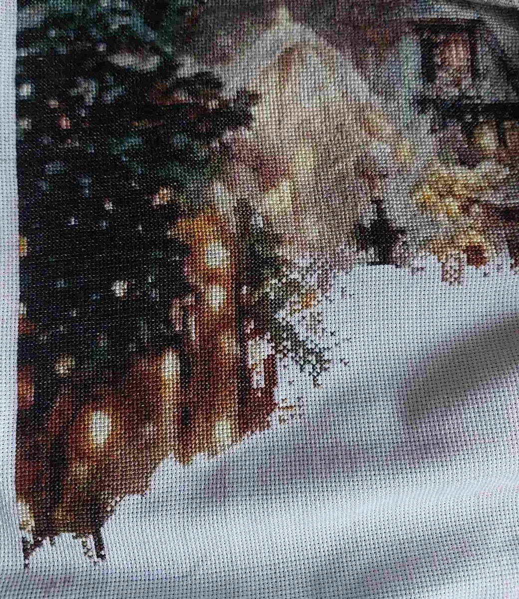 Этап процесса вышивки «Облачное королевство. Химера»